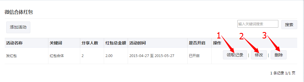 YfdCms系統(tǒng)管理后臺【微活動(dòng)】【微信合體紅包】中添加或管理 新微信紅包合體應(yīng)用是由國內(nèi)享有盛譽(yù)的YfdCms專業(yè)技術(shù)團(tuán)隊(duì)獨(dú)家開發(fā),在傳統(tǒng)紅包派發(fā)模式上進(jìn)行革新,粉絲在搶紅包時(shí),轉(zhuǎn)發(fā)分享給一定數(shù)量好友進(jìn)行紅包合體,可提高紅包金額。在合體紅包同時(shí)還可查看合體進(jìn)度,完成合體即可領(lǐng)取商家紅包。領(lǐng)取后的紅包直接進(jìn)入粉絲的微信錢包, 實(shí)現(xiàn)與微信錢包的無縫對接。